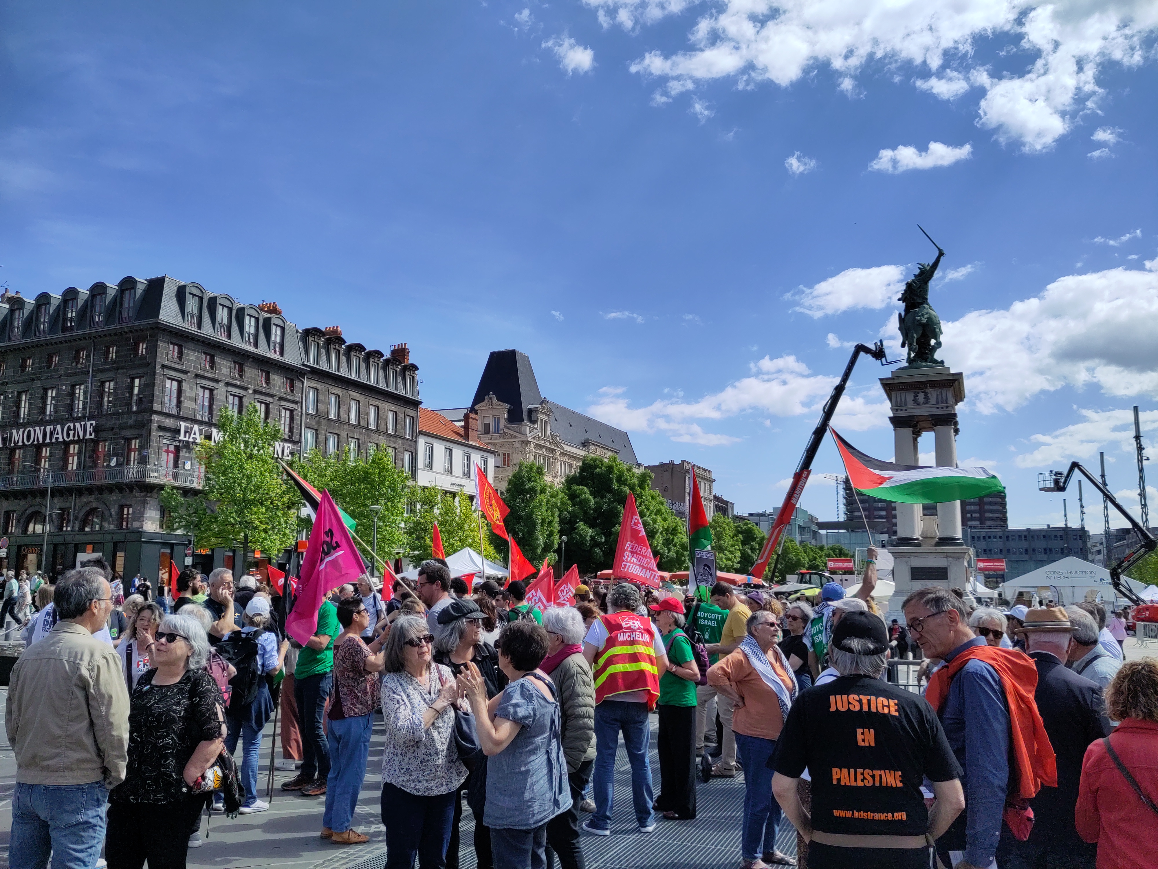 📣 Samedi 25 avril 2026, nous étions 300 au rassemblement à l’appel de : AFPS, Amnesty international 63, ATTAC, 4 ACG (anciens appelés en Algérie et leurs amis contre la guerre), CGT Educ’action, CGT UD 63, FI, FSU, L’après, Les Ecologistes, LDH, Libre Pensée, FPRA, PCF, RESF, Retraités Solidaires, Solidaires Auvergne, SUD Education, Union Etudiante, Urgence Gaza, pour le droit des peuples à disposer d’eux-mêmes, pour dire « Non » aux impérialismes, pour dire « Non » à tous les fascismes et pour dire « Non » à la guerre.