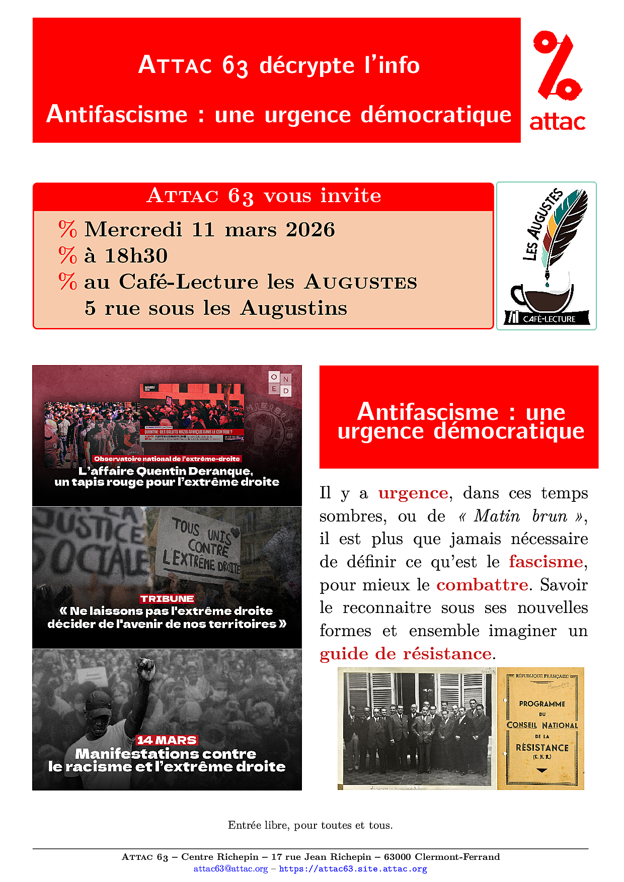 🚨Ne manquez pas votre RDV avec Attac63 :